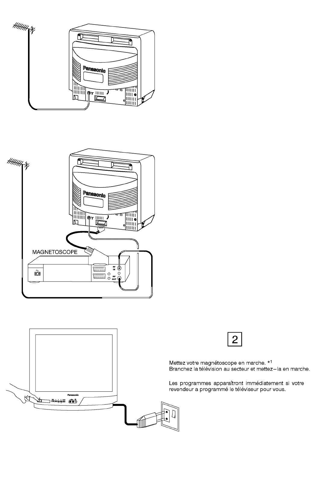 *1 nous vous recommandons de mettre en marche le signal-test de votre magnétoscope. Consultez le manuel de votre